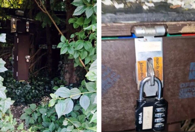 But the experience doesn’t end there. Hidden inside the pole of the LEGO house is another surprise, secured with lock 2. Opening it reveals a LEGO Travel Bug hotel, a playful and secure stop for trackables before they continue their journey.