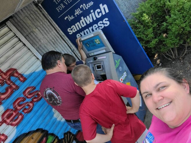 As you approach GZ, you wonder where a large geocache could be hidden in this suburban environment. The geocache description states that the cache has the property owner’s permission, so feel free to look around the area. After a few minutes, you notice something that looks out of place. What you had thought was an ATM has a note on the top which states, “This is not a real ATM!” If it’s not a cash machine, it must be a…cache machine!