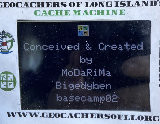 Just because you found the geocache does not mean the fun is over! This gadget cache requires the completion of a five-step field puzzle to access the log. First, turn on the machine. A screen lights up, and a question appears. Use your geo-senses to answer the question. In return, a code appears on the screen to unlock a lock box.