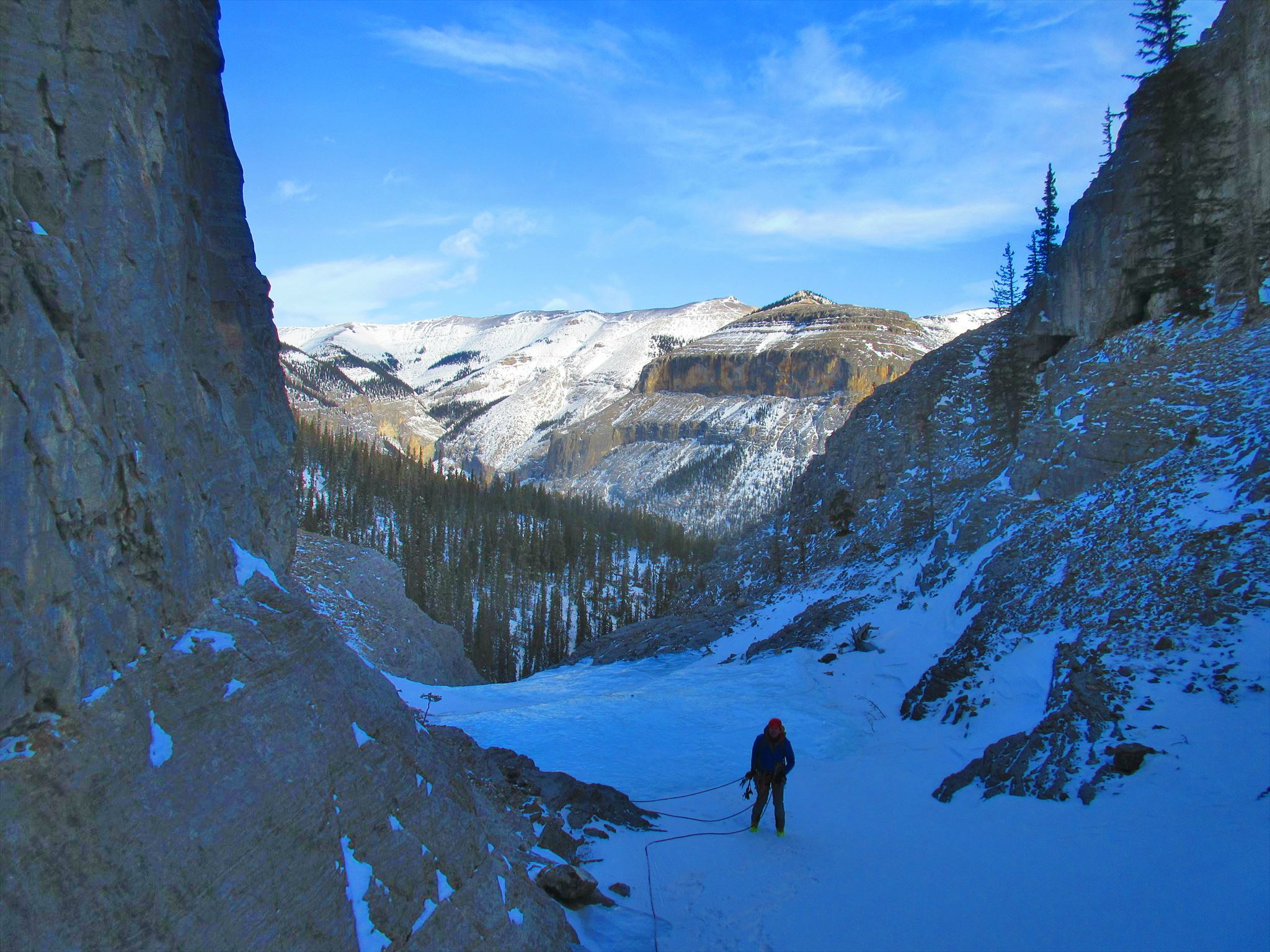Sky House is reached by undertaking a twelve pitch ice climb on the famous House of Sky Climb located in the Ghost River Wilderness Area in Alberta, Canada. While it is possible to hike to the cache during the summer, it is not recommended, as the trail is poorly marked and it is very easy to get lost. The best time to approach it is during the winter.