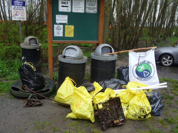 Meanwhile, a few miles away, other Lackeys joined nearly 30 other geocachers at the Bellevue Parks Arbor Day CITO.