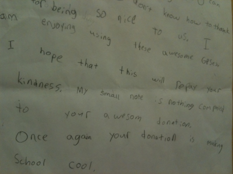 More than 30 letters from different classrooms have arrived at Groundspeak over the past year and we are committed to putting more GPS unites in the hands of students.