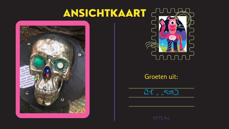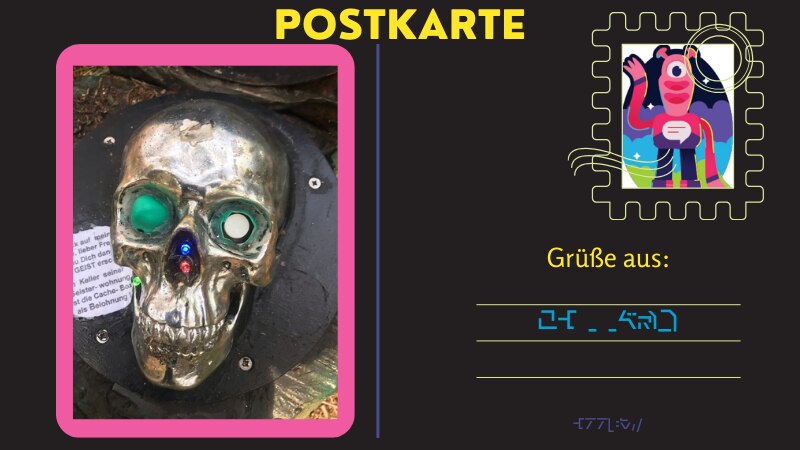 Während wir geocachen um Treibstoff für ihr Raumschiff zu erzeugen, sind unsere Freunde aus dem Weltall unterwegs, um den Planeten zu erkunden. Der Geocache auf der letzten Postkarte, die wir erhalten haben, war GC6XP4X. Heute früh erreichte uns die oben gezeigte Postkarte. Kannst Du uns sagen, welcher Geocache gezeigt wird? Teile Deine Vermutung in den Kommentaren!