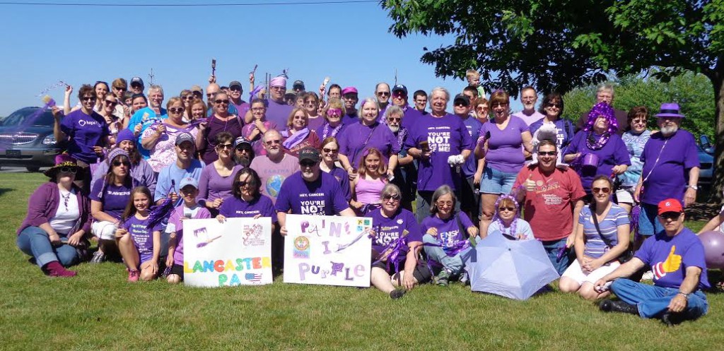 Painting it Purple was our theme. Attendees were to dress and accessorize in purple and to bring along a paintbrush with purple ribbon tied to it. When the event began, we started “painting” everything in sight with our paintbrushes. The color purple was chosen because our event was held very near the Relay For Life of Lancaster. After the event, some of the cachers went into the Relay and walked some laps around the track to Celebrate, Remember, and Fight Back against cancer.