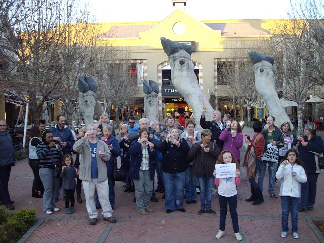 We had an awesome event blowing bubbles around a giant sculpture of an upside down cow. It was freezing here in Pretoria but geocachers are not put off by a bit of cold weather and we had a super turnout of 35 people. It was great to see some new geocachers attending their first ever event and a Flash Mob at that!