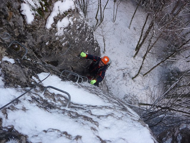 The T5 thrill seekers come to this area to feel alive and experience the adrenaline. The first stage of obstacles include ladders, originally made of wood and used by smugglers in the 18th century to pass over the Swiss border. Today, in place are safer ladders that are reinforced, and hooks in the side of the rock face to help you traverse en cours to the geocache.