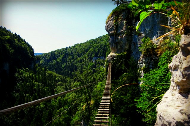 What is Geocaching without adventure, risk-taking, thrill, and a challenge to overcome? GC32NMB encompasses every one of those elements, and has its own movie trailer. Be prepared to cross narrow monkey bridges that sway over 100 meters of open air, scale rugged rock faces, and climb what the locals refer to as des Echelles de la Mort: the ladders of death. After signing the log-book, zip line your way through the Doub Gorges in the Franch-Comté region of France to cap off this epic journey.