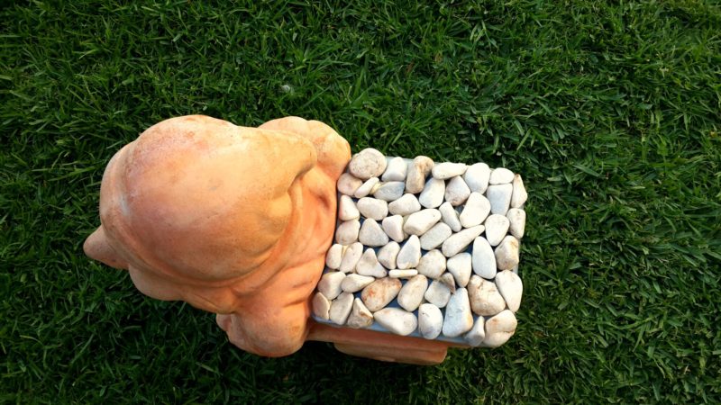 Tucked discretely in a corner of the garden is a gnome pulling a cart full of pebbles…also known as stage one. The geocacher who spots the gnome will discover within a few seconds that his cart bears a load much more exciting than stones.