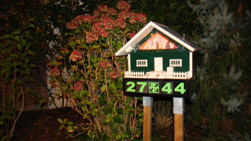 The cache is disguised as a birdhouse displaying the CO’s street number.