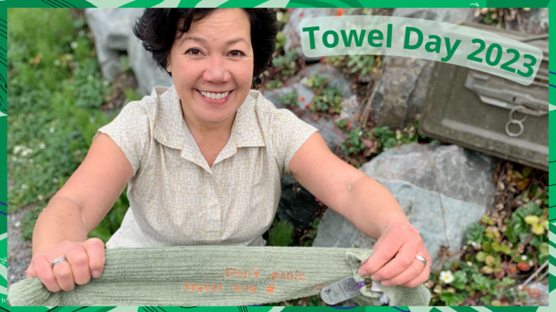 Geocachers enjoy celebrating geeky holidays, and Towel Day is no exception! It is celebrated on May 25 every year in commemoration of the life and work of Douglas Adams, author of The Hitchhiker’s Guide to the Galaxy. Hitchhikers carry a towel with them on this day to celebrate.
