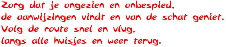 • Neem geen gevonden aanwijzingen mee uit de huisjes, laat deze netjes achter zoals je ze vond.