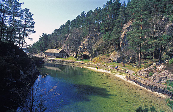 The Sandholna outdoor recreation area lies at Arboretet, east of Mildevågen.  The area covers 64 decares and is a former cottage property, with a 700 m shoreline facing the Fanafjord.  The recreation area is a bathing and hiking area that is suitable for children, featuring a small enclosed fjord of 2.3 decares, which has been excavated and built up to form an open-air swimming pond.  The area includes toilets, an information sign, and a water pump.