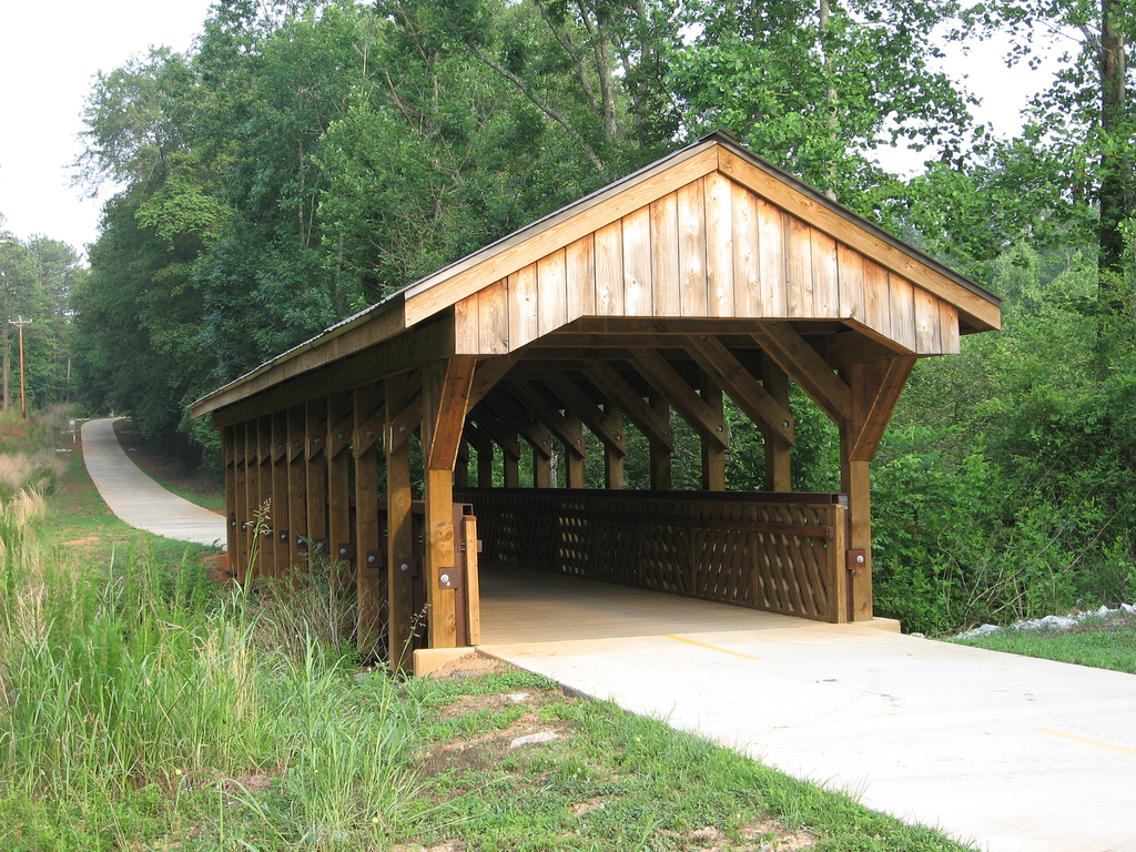 The PATH Foundation built the bridge in 2004 using a lattice truss design developed by Horace King, who was born into slavery before the Civil war. King bought his freedom in 1846 and became a prolific bridge builder. He built bridges in west Georgia, Alabama and eastern Mississippi until the 1880's. At one time, he was responsible for building the major bridges crossing the Chattahoochee River. King had four sons that he trained to build covered bridges and they formed a bridge building company. After the Civil War, King continued his work as an engineer and architect, while serving two terms in the Alabama House of Representatives. He later moved to LaGrange, where he lived with his family until his death in 1885.