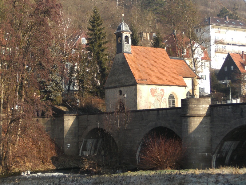 Die Wolfgangsbrücke (erbaut 1340) ist noch älter als die St. Wolfgangs-Kapelle, die ebenfalls einen Besuch lohnt. Da wir die Brücke täglich überqueren, wollten wir hier unbedingt einen Cache legen. Zur Großansicht auf das Bild klicken Bei Hochwasser könnte es etwas problematisch werden. Viel Spaß beim Suchen!