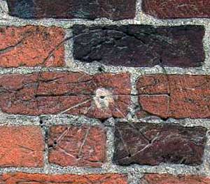 Südseite sind zwei in den Backstein geritzte Sonnenuhren und an der