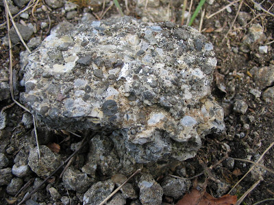 If you go along the Metzinger road, you see on the hill side a different dark rock with white points minded. The area is difficult to access, but you can be closer to see it if you give to its northern side tree free distance, bare-looking mountain climbs; but the best thing is to follow the Geological Trail. In many places, the turf by is lost through livestock and human fees with subsequent erosion . Now you see the dark rocks closer, then you realize that it usually means a smaller entity wrinkled - also subordinate limestone pieces - and rounder, almost round entity, by geologists as lapilli be described. If you open these lapilli, then they show a crystalline core of the green mineral Oivin or Melilithit, a kind of basalt. Jusi The rock is volcanic. Because of its composition and its structure is as tuff. The Jusi is through the removal - the erosion - largely opened volcanic vent.