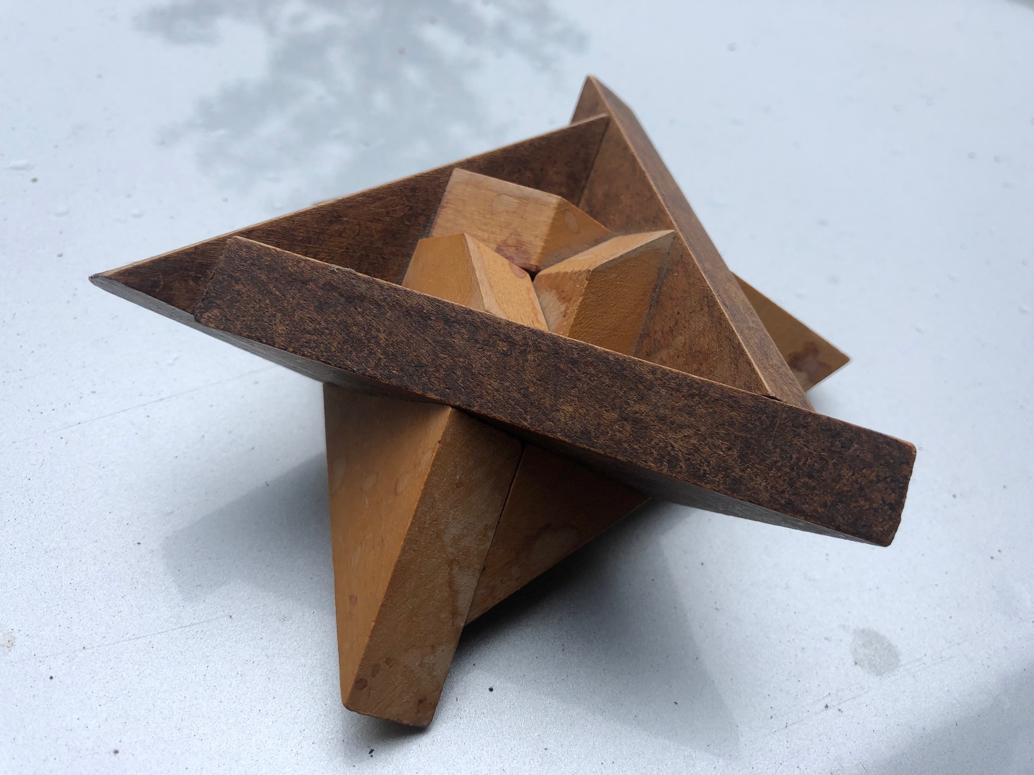 2. Assemble the six wooden pieces of puzzle to look like this.