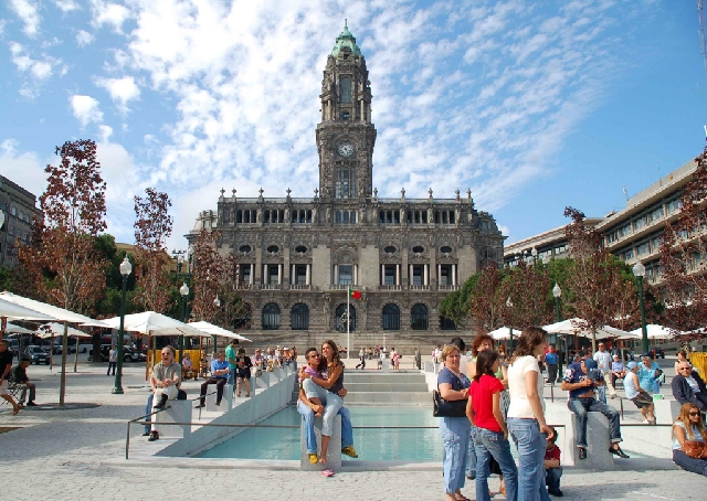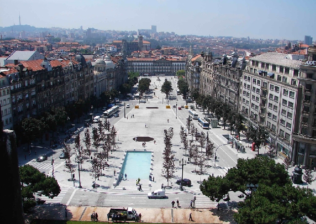 | The Avenue of the Allies , initially called, Avenue of the Allied Nations was opened in 1916, at north of the Square of Freedom. The idea of the construction of this avenue in 1914, made part of a plan to renew the city centre, linking the squares of Freedom and Trindade. It was approved by the Board in 1915. Thanks to this project, we have now a beautiful avenue that today presents itself with many buildings of architectural value. On top of the avenue of the Allies is the Town Hall of Oporto. The imposing of the whole architecture and its central character make it the "Guestroom" of the city. This is the square where the people of Oporto city gather in the special moments during the year: in S. John’s day (23/24 June), in the New Year’s party, and other special events. In the middle of the avenue, there are the two entries of the "Allies' D-Line of Metro do Porto (Subway). It was precisely the construction of the station that triggered a complete recasting of the avenue, a task that was handed over to architect Álvaro Siza Vieira. By mid-2006, the avenue was changed in some aspects due to the construction of the subway station, and the existent gardens were replaced by parallelepipeds of granite. The project was surrounded by an enormous challenge and controversy because it, allegedly, disfigured the historical tradition and the local landscape. Nevertheless, the work - which sought to create continuity between the squares of Freedom - was in its broad lines done. |