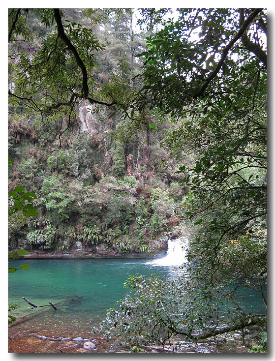 drops steeply through mature tawa forest. When it reaches the