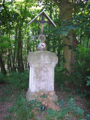 Jedná se o litinový krížek na kamenném soklu, prekrytý jednoduchou stríškou. Za soklem leží zbytek asi staršího puvodního kríže, který byl nalezen v okolí (není soucástí keše, takže prosíme nemenit a nednášet!) K tomuto krížku na malém pahorku uprostred lesa se vztahuje zajímavá povest, která je zachycena v knize, vydané k 800 letému výrocí založení obce Ledce v roce 1981.