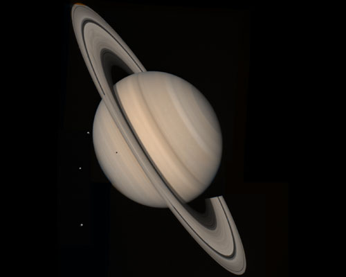 Saturn is a spectacular planet with it's bright colors and many rings which are made of chunks of ice and rock ranging in size from a grain of sugar to as big as a house. Saturn is the second largest planet and also has the second largest moon in the solar system named Titan. Saturn has almost as many moons as Jupiter and 16 of them always keep the same side toward the planet, just like our moon.