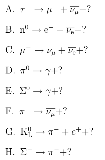number (below) to the particle that is missing from each decay.