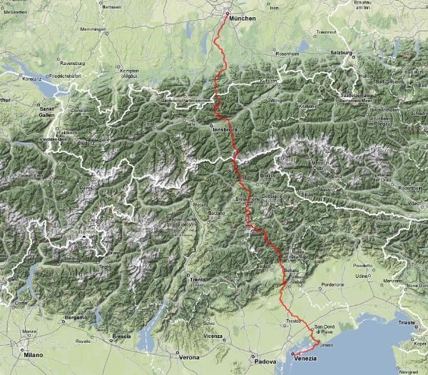 Es beginnt die Zeit ohne ordentliche Topo-Karten und Wegbeschilderung bzw. mit völlig widersprüchlichen Angaben. Schau doch einfach mal bei N 45° 58.195 E 012° 12.857 auf den München-Venedig-Wegweiser: Welche Wegnummer ist denn DA angegeben ?