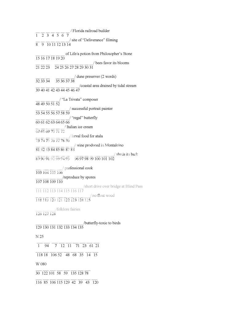 I enjoy puzzles as part of finding a cache. This puzzle has some clues and words about plants, butterflies and things related to Florida. The hide is near a place that was a rock pit forty years ago. years.