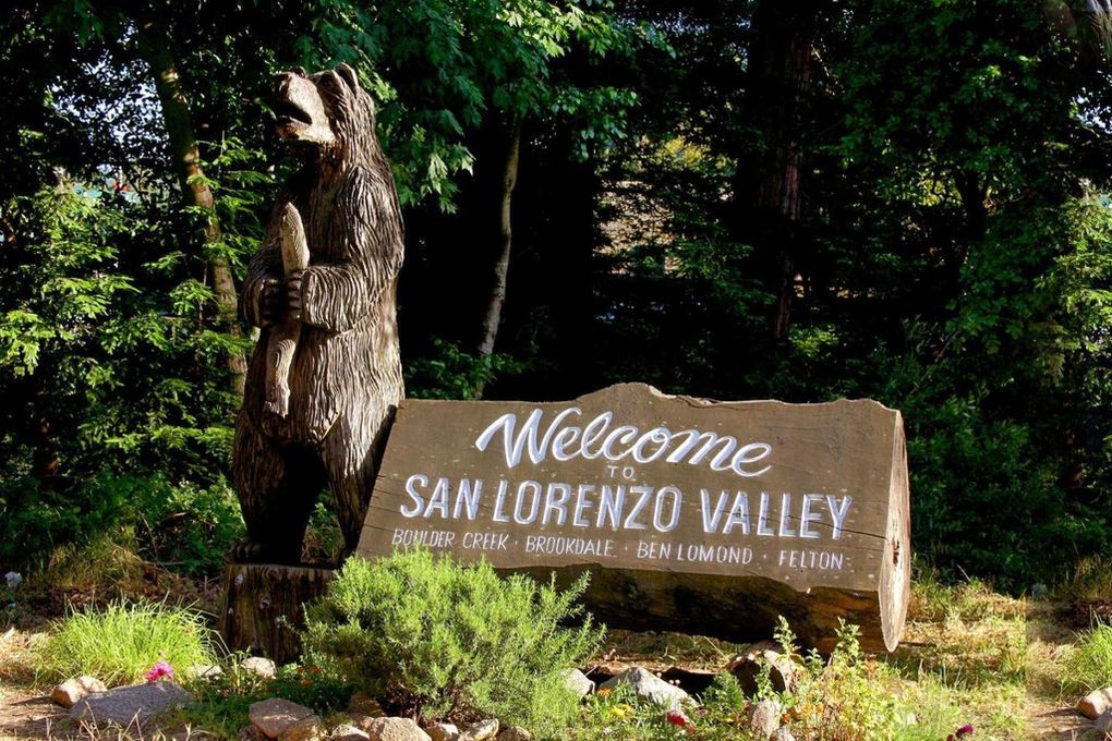 As we've been welcomed into the lives of some friends who live here in Boulder Creek, we wanted to place a cache near a landmark welcoming visitors to San Lorenzo Valley. Near the "Welcome to San Lorenzo Valley" sign is the tallest bear in Boulder Creek, standing over 8' tall. Check him out!