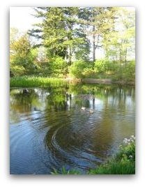 Über wie viele Minikaskaden plätschert das Wasser in diesem Teilstück des Blumengartens?