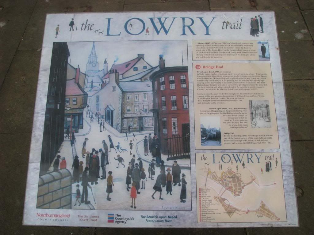 His love of the area is shown in the large set of drawings and paintings of the people and places. In recognition of this, the town council erected a series of story boards around Berwick, Tweedmouth and Spittal. Each board has a painting/drawing on it that he did at that location.