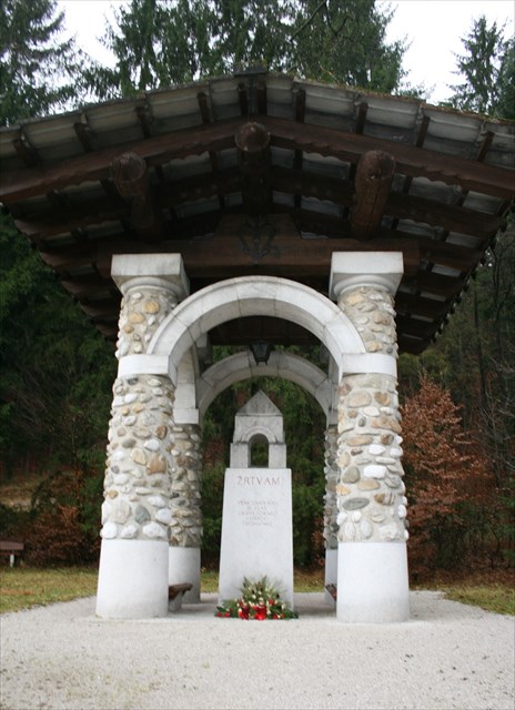Na mestu, kjer je bilo ustreljenih 19 talcev je spomenik, oblikovan kot kapelica – odprta lopa na štirih stebrih z žrtvenikom, do katerega vodi peščena pot z brezovim drevoredom. Zidani stebri so povezani s štirimi loki, na vrhu pa po dva skupaj vežeta prečna dekorativna trama. Čez njiju so položeni še trije okrogli dekorativni trami. V ogrodje strehe je avtor spomenika dal vdelati preostanke kolov, pri katerih so imeli mučitelji privezane svoje žrtve. Kamni iz katerih so izdelani stebri so prinešeni iz bližnje Selške Sore. Po naročilu Jožeta Plečnika je načrt leta 1949 izdelala Vladimira Bratuž. Avtorji spomenika so tako Jože Plečnik, Anton Bitenc in Vladimira Bratuž. (Koordinate niso najbolj natančne zaradi hriba v ozadju. Pomagajte si z namigom.)