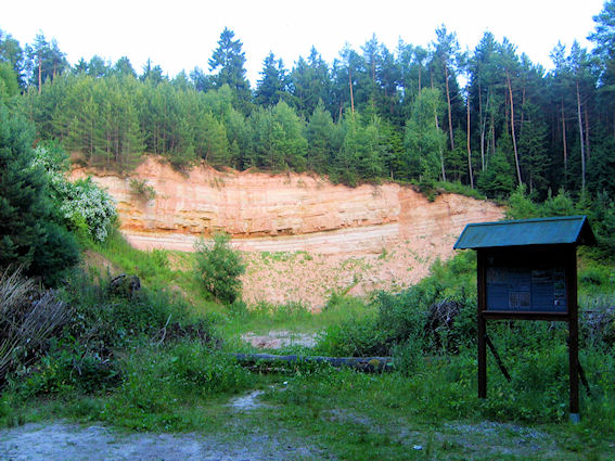 In 1994 a sandstone with the fossil impressions of saurian tracks was found in a former sandy pit near Bad Arolsen-Bühle. The limestone layers were deposited during the development of bunter (so-called Detfurth-Sequence), predominantly as sediments of larger river systems. On the soft subsoil the saurians left footprints. If these tracks from new depositions became quick enough covered, her preservation and "fossilization" was possible. The fossil tracks are reflected as "negative impressions" on the bottom side of the overlaying rock. In the forest of Wolfhagen one has found such saurian tracks. Besides, the local tracks of "Chirotherien" are valid as the oldest ones worldwide.