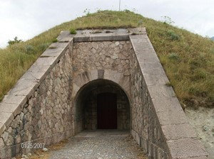 Ce magasin à poudre à 2 niveaux est construit dès 1695. Au XIXème siècle, son chemin de ronde est couvert d’une voûte et l’ensemble est enveloppé d’une épaisse couche de terre pour le rendre moins vulnérable aux tirs d’obus.