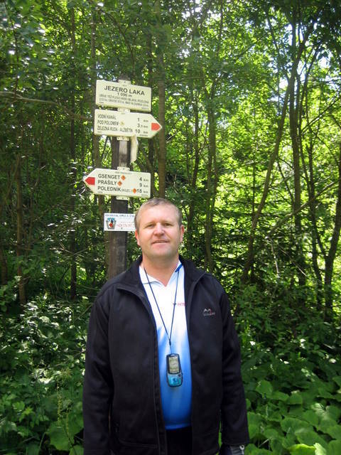 2) Vyfotte se u rozcestníku tak, aby byla videt tabulka Jezero Laka spolecne s vámi nebo s vaší GPS s citelnými souradnicemi (dobrovolný úkol)