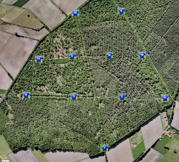 Die Spieler findest Du wie folgt im nahe gelegenen Waldgebiet: