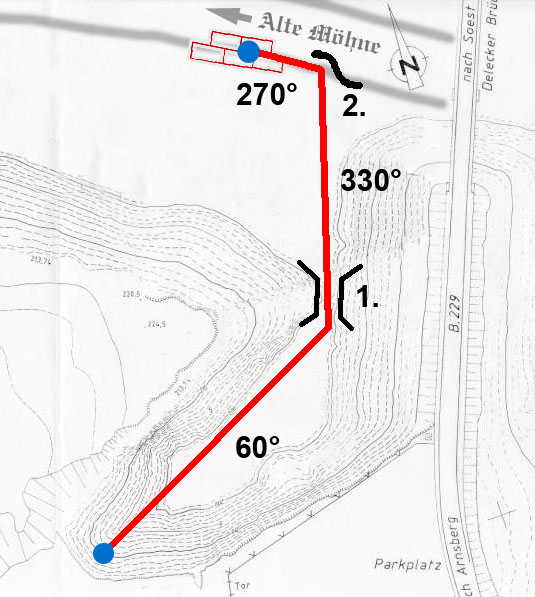 man diesen Punkt gefunden geht es weiter auf dem Kompasskurs 330°