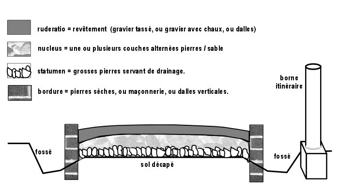 - un revêtement, fait en général de gravier, ou de gravier enrobé