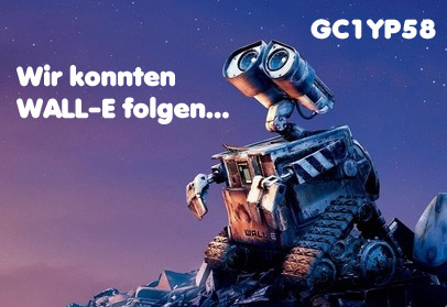 In einer fernen Zukunft haben die Menschen die Erde verlassen, da diese durch Umweltverschmutzung unbewohnbar geworden war. Ein Heer von Müllrobotern des Typs WALL-E wurde zurückgelassen, um aufzuräumen. Im Jahre 2815, nach 700 Jahren des Müll sammelns und der Müllverarbeitung, ist der Protagonist WALL-E der einzig Übriggebliebene. Nun sind wir Menschen also wieder da und sollen die Teile finden die Wall-E auf seiner Rundfahrt hier liegengelassen hat. Da es sich größtenteils um Roboterteile handelt sind die Aufzeichnungen, wie und wo diese zu finden sind natürlich in Wall–E’s Schrift, die nur aus Nullen und Einsen besteht oder aber sogar die Buchstaben A bis F als Zahlen verwendet niedergeschrieben. Man nennt es auch Binär oder Hexadezimal. Also folgt dem kleinen Roboter auf seiner Reise über Berg und Tal. Er legte etwa 6,5km in ca. 3-4 Stunden zurück. Diese Zeit sollte man auch einplanen da es einige auch für den einen oder anderen anspruchsvolle Aufgaben zu lösen gilt. An der 2. Station bekommt ihr ein paar Hilfsmittel die ihr mitnehmen solltet – legt sie nachher bitte wieder zurück. Der Weg geht zwar nur über Waldwege, für Kinderwagen sind sie weniger geeignet, da es teilweise sehr schlammig und hier und da auch ein bisschen eng ist. Ansonsten ist die Runde für „Geländegängige“ Kinder gut geeignet. Bitte behandelt die einzelnen Stationen vorsichtig, sorgt dafür das sie bei Regenwetter nicht nass werden und versteckt alles wieder gut. Den Startpunkt, wo auch zugleich geparkt werden kann ist hier: