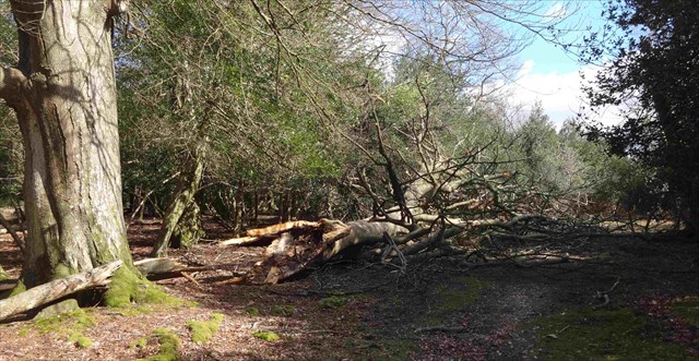 This first warm-up leg of our walk follows a track across open heath, gradually working away from the road, and towards a copse with some old holly trees with twisted and hollow trunks. In his book 'Ancient Woodland', Oliver Rackman elaborates on the importance of Holly as fodder in the New Forest since ancient times and says that repeatedly pollarded specimens may be more that 250 years old. At certain times of year, small branch tips are found lying on the ground around some Holly trees. These have been bitten off by the ponies and are left to lie for some days before being eaten. This process is thought to make the leaves more palatable.