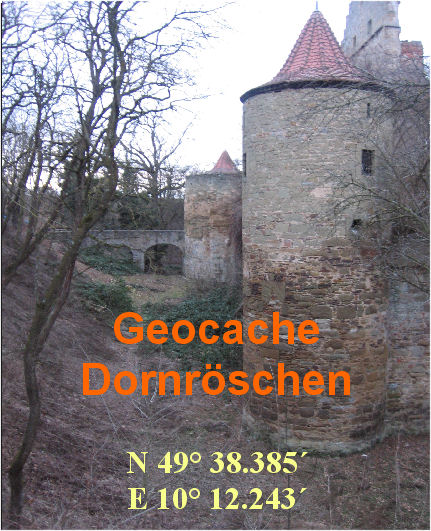 Seitdem kümmert sich der Wässerndorfer Schlossruinenverein um die Reste. Der Cache befindet sich außerhalb der Schlossmauern im Burggraben. Bitte seid vorsichtig und zieht nicht ohne Bedacht auf Verdacht irgendwelche Steine aus der Mauer.