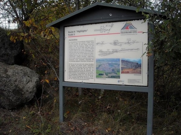 Zum Herchenberg: Seine Lage ist nordwestlich von Burgbrohl. Es gibt beim Herschenbergvulkan zwei Ausbruchzentren, ein südöstlicher und ein nordwestlicher Ausbruch. Im südöstlichen Ausbruchszentrum kann man zwei Ausbruchsphasen unterscheiden, die durch eine Ruhephase getrennt sind.