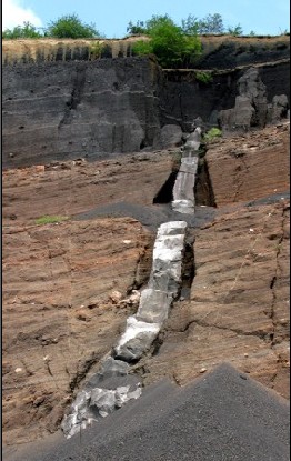 Die erste Ausbruchsphase lässt sich erkennen an den steil in den Berg einfallenden, dunkel geschichteten Schlacken, die über Kieseloolith-Schottern, verkieselten Sanden, tertiärem Ton und devonischem Schiefer liegen. Es folgte eine längere Ruhepause in der sich Löss und anschließend Wehrer Bims über die vulkanischen Auswurmassen legte. Danach muss eine intensive Bodenbildung stattgefunden haben. Es konnte festgestellt werden, dass die Bodenbildung in keiner Kaltzeit erfolgte und das hier zeitweise ein Kratensee verhanden war. Die Schichtenfolge in der fossilen Kratenmulde dokumentiert eine Kaltzeit und im Anschluss eine Warmzeit. Über den Humusablagerungen der Kratermulde liegen Löss und Basalttuffe von unbekannter Herkunft, die in einer zweiten Kaltzeit abgelagert wurden.