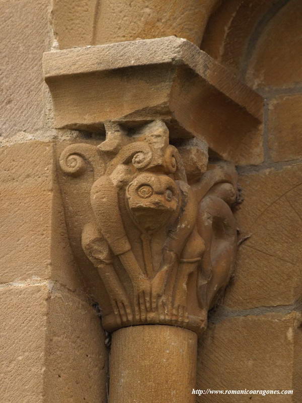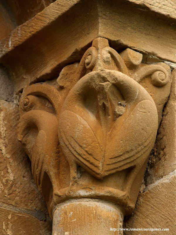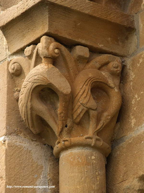 dorso juntando sus picos en la esquina del capitel. Y también un