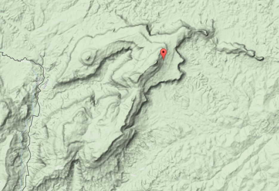 Topo map of Auyantepui, which is the source of Angel Falls the world's tallest waterfall, is another tepui.
