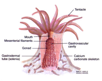 with an outer skeleton of calcium carbonate (CaCO3) and "soft"