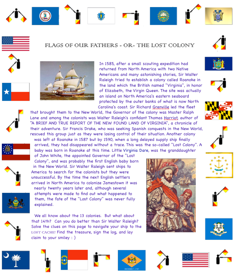Update: May 13, 2010 The lost colony has moved. The original location was damaged from the heavy snow in the winter months. A change of venue was required and is now at a new location. If you solved the puzzle prior to May 13, 2010 - you will need to solve it again to get the new location.
