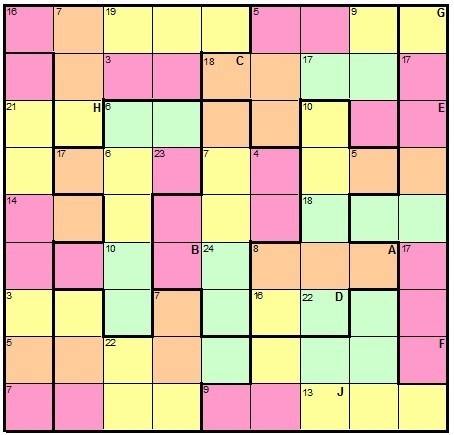 In addition, the total of the numbers in each coloured block is shown in the top left corner of the coloured block.