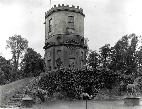 A natural hillock to the east of the house was reshaped and surmounted by a belvedere. The belvedere existed until 1950, when it was demolished with the hall due to war damage. Some remnants remain of the Hall, in particular steps leading to what used to be a folly in the park.