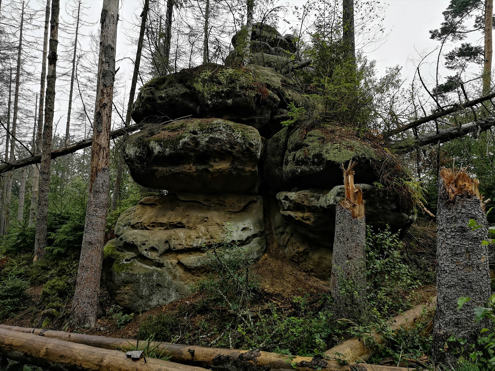 Sicher habt Ihr durch GENAUes Betrachten der ersten Alternative schon bemerkt, auf welcher Erhebung der Cache platziert ist. Von hier aus ist es nicht weit bis zu einem berühmten Felsentor, besser bekannt als Viehpenne, und der dort beginnenden Wolkenstiege. Auch das Gorillafelsmassiv und die beiden Diebburgen sind nicht weit. Bitte beachtet bei Euren Wanderungen immer das im Nationalpark geltende Wegegebot. Im Epizentrum bedeutet dies, dass nur ausgeschilderte Wege benutzt werden dürfen. Beim Absolvieren des Multis befindet Ihr Euch aber außerhalb dieses Bereichs. Ihr dürft deshalb auch alle anderen vorhandenen Wege begehen.